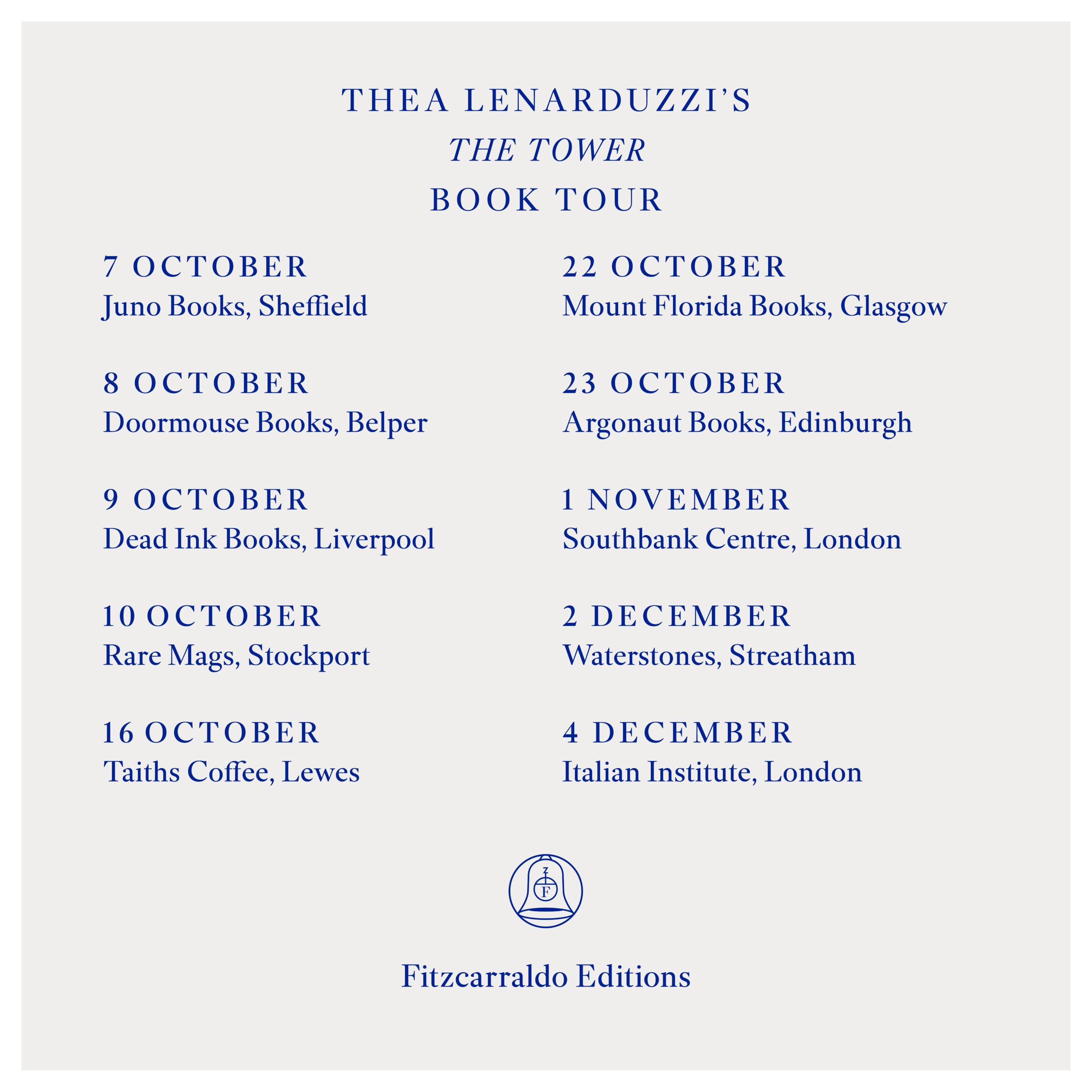 Thea Lenarduzzi, author of The Tower, will be on tour this autumn. Please see below for details and links to each event.