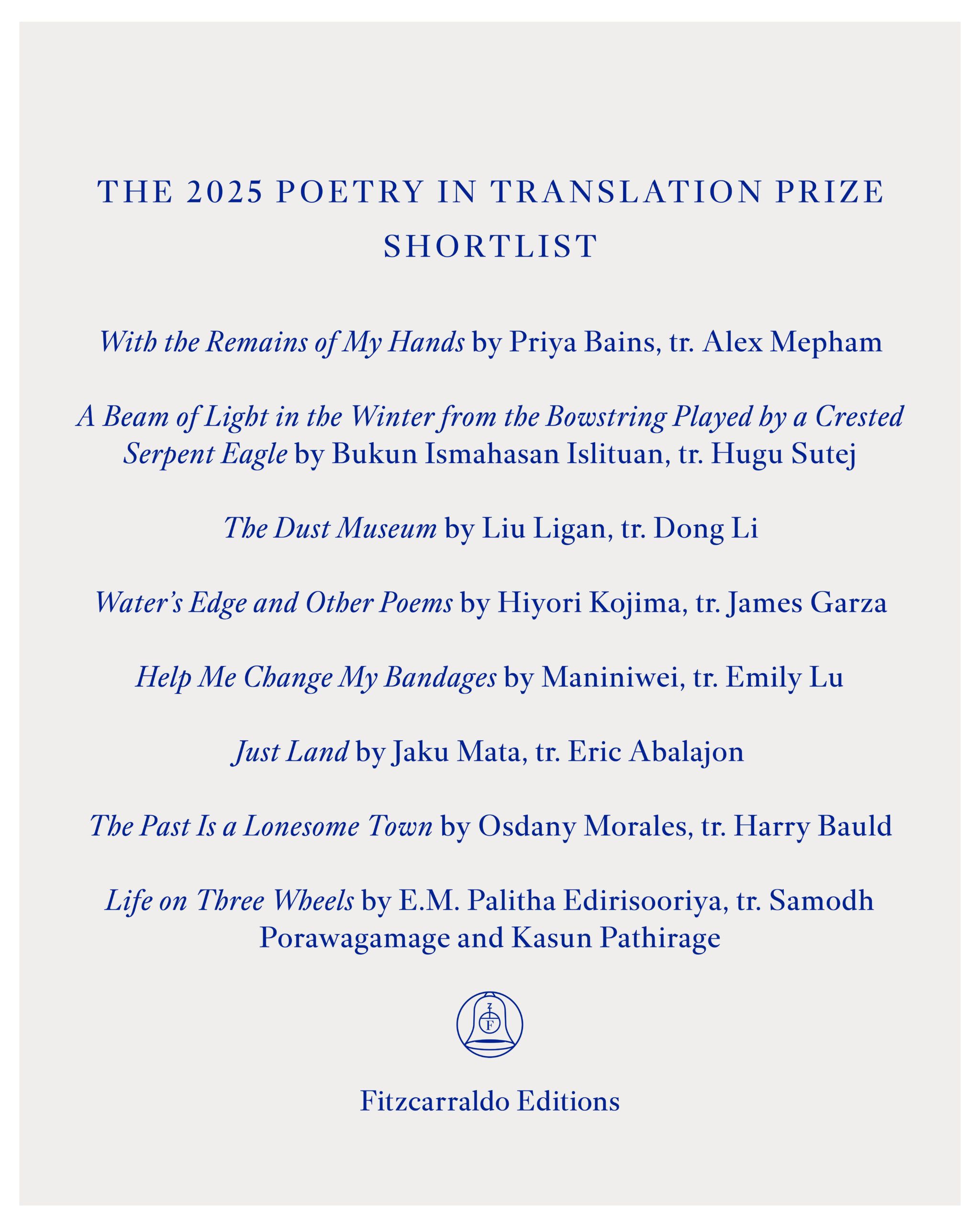 Fitzcarraldo Editions, Giramondo and New Directions are pleased to announce the shortlist for the inaugural Poetry in Translation Prize, selected from 259 submissions in more than 55 languages.